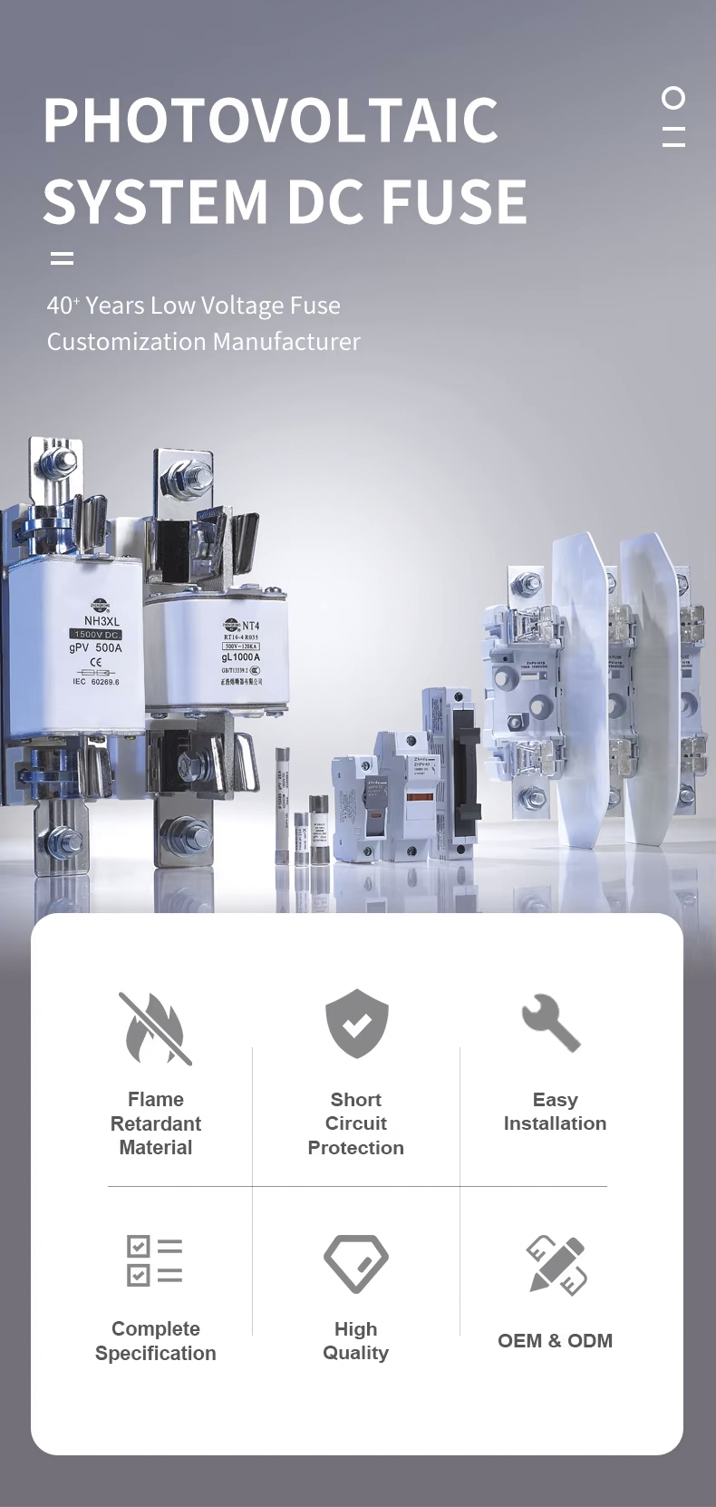 Для запитів щодо фотоелектричного запобіжника постійного струму, циліндричного запобіжника, запобіжника Square Bolt BS88 або прайс -листів, будь ласка, залиште нам електронний лист, і ми будемо на зв’язку протягом 24 годин.