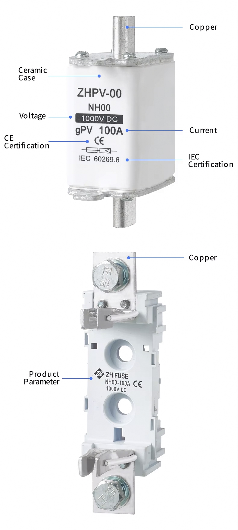 Гарячі теги: NH00 Фотоелектрична система DC 1000V 32~100A Плавка вставка